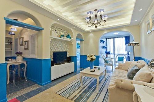 對于地中海這樣的沿岸地區(qū),裝修風格中的主要色系就是白色和藍色,搭配上造型別致的拱形設計物件和石礫貝類等素材的任意組合,即可營造出別具特色的地中海風情。在打造地中海風格的家居時,配色至關重要,要突出純粹的天然并可以給人一種陽光灑下,清新自然的感覺。當然,來自于大自然最純樸的色彩元素不僅僅只有藍白兩色,與黃色,土黃色,綠色,藍紫色以及紅褐色交織在一起的色彩,才能創(chuàng)造出地中海獨有的藝術風格。